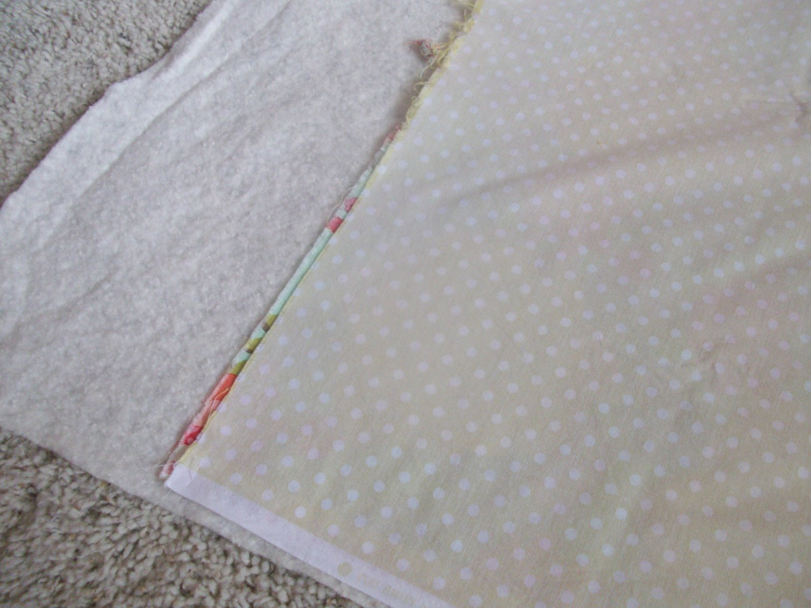 After prewashing and ironing your fabrics, lay out the fabric right-sides together (I used 1 yard of each fabric for this project).